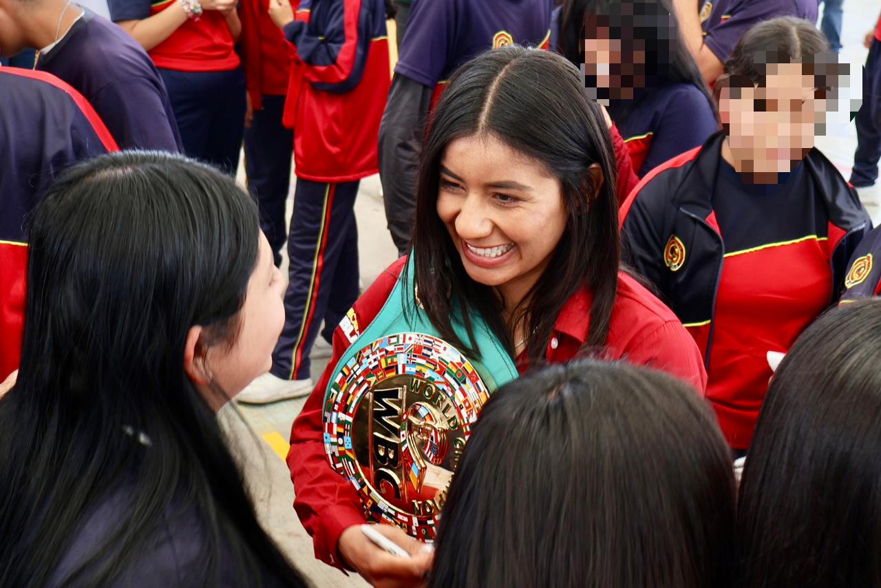Durante su mensaje en el Centro Escolar Gregorio de Gante, destacó que su participación en las Olimpiadas Nacionales de CONADE marcó su vida y le permitió representar con orgullo a su estado. Expresó que esa experiencia abrió camino a su carrera profesional y le dejó aprendizajes y amistades que aún conserva. Añadió que su camino para convertirse en campeona del mundo implicó retos importantes.