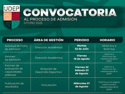 Oficializa UDEP fechas de convocatoria 2025 y lanza sitio para pre-registro