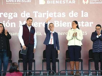En Huauchinango, Puebla, presidenta Claudia Sheinbaum entrega nuevas tarjetas para la pensión Mujeres Bienestar